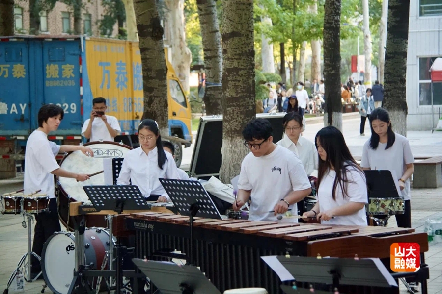 艺术展演为校园注入灵动活力。山东大学民族乐团在“青年舞曲”专场音乐会上奏响民乐华章,经典曲目在弦索管弦间流淌,民族音乐魅力尽显;京剧展演专场中,学生演员粉墨登场,唱念做打间传承国粹精髓;“戏剧公开课”上,创作故事与戏剧热情迸发火花,点燃学生艺术梦想;“只有俄罗斯”交响音乐会上,交响乐团精湛演绎引人入胜;刘娜老师美育大课堂专场音乐会上,诗词与声乐、民歌交织,歌声里感悟民族音乐风情;非遗“熨烫葫芦”活动中,师生沉浸式体验非遗魅力;“代际共筑育人路径”特色主题展演中,老中青三代同台,岁月沉淀的艺术韵味传递育人力量;“春鼓・融”露天音乐会上,鼓声激昂,奏响春日融融新声。