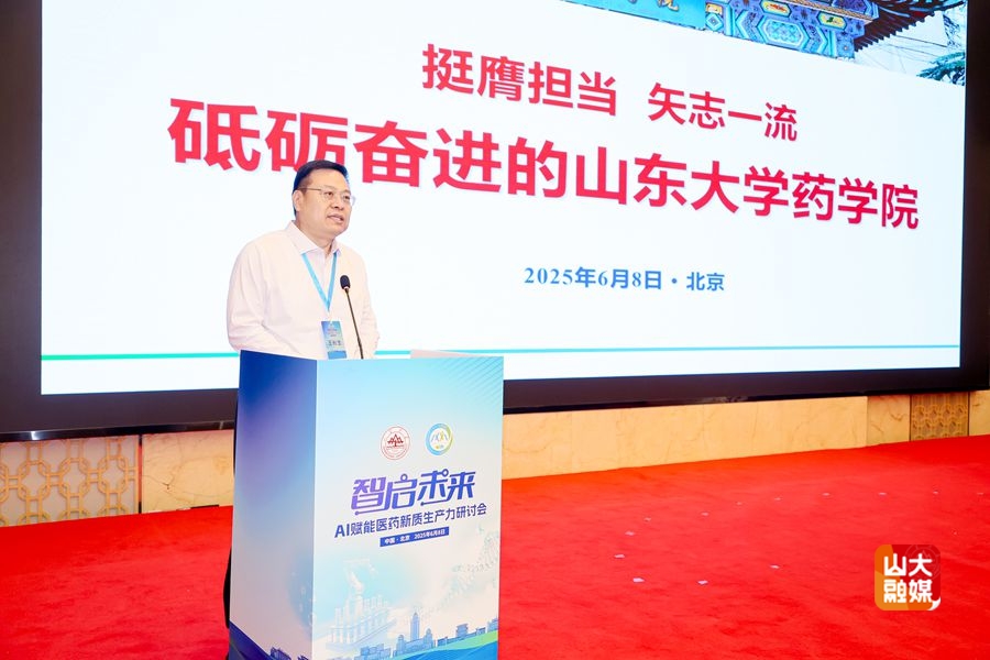 [本站讯]6月8日,由山东大学药学院、山东大学药学院校友会、山东大学医药行业校友会联合主办的“智启未来•AI赋能医药新质生产力”研讨会在北京举行。山东省人民政府驻北京办事处党委书记、主任苑衍刚,中国食品药品企业质量安全促进会会长毛振宾,山东大学齐鲁医学院党工委书记、齐鲁医院党委书记陈鑫,山东大学校友工作办公室主任、校友总会秘书长、北京研究院院长王震,山东大学校友总会副会长、北京校友会常务副会长兼秘书长周建民,山东大学医药行业校友会会长凌沛学,山东大学药学院校友会会长王凤山,山东大学药学院党委书记王秋生出席会议。