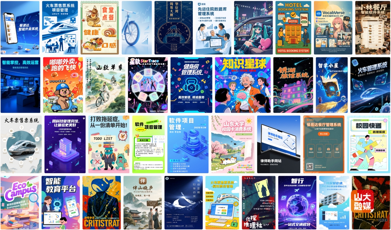 “画”——结合口头汇报环节绘制软件项目的海报(poster),鼓励同学们用生成式人工智能辅助设计,培养创新表达能力。