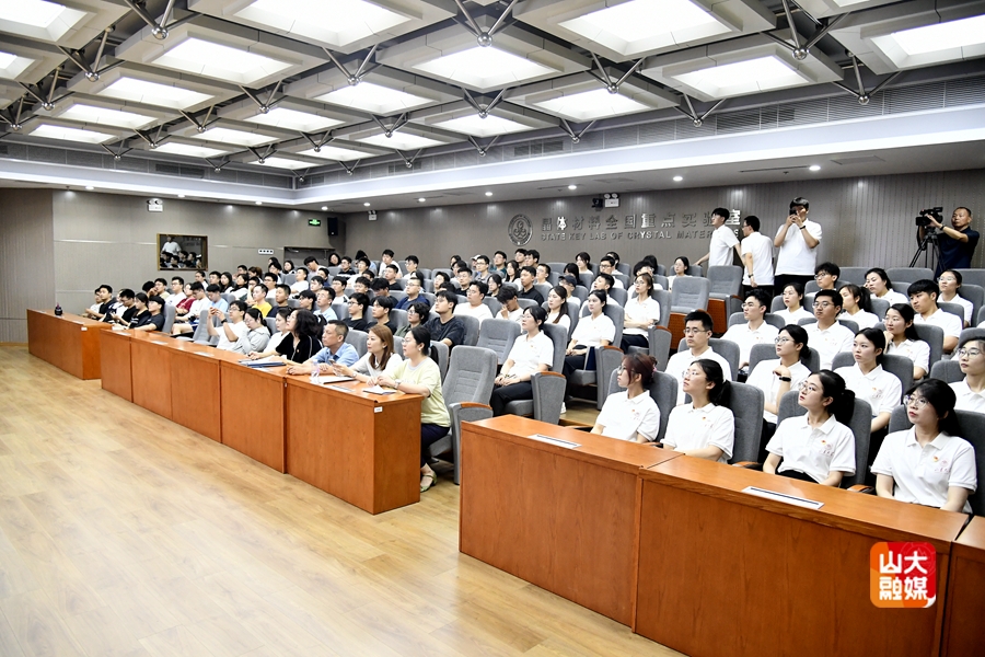 刘全芬、晶体材料研究院党委副书记赵希波分别主持缅怀仪式和主题党课环节。蒋民华先生亲属,研工部、学工部、团委、晶体材料全国重点实验室等单位的有关负责同志、师生代表等参加活动。