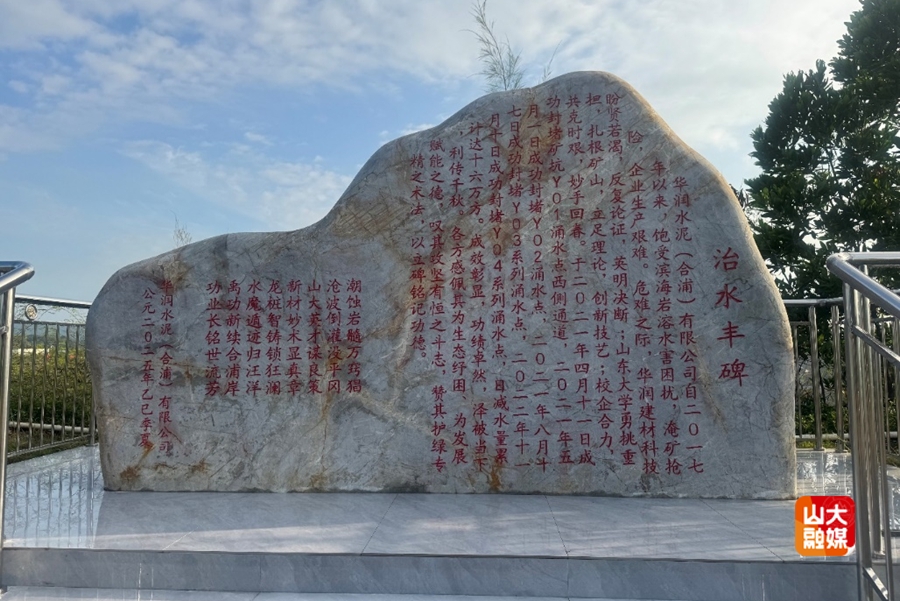 [本站讯]7月21日,在广西华润水泥(合浦)滨海岩溶矿山水害治理科研现场基地,华润水泥(合浦)有限公司为感谢山东大学科研团队服务其矿山水害治理成效,举行立碑表彰仪式。