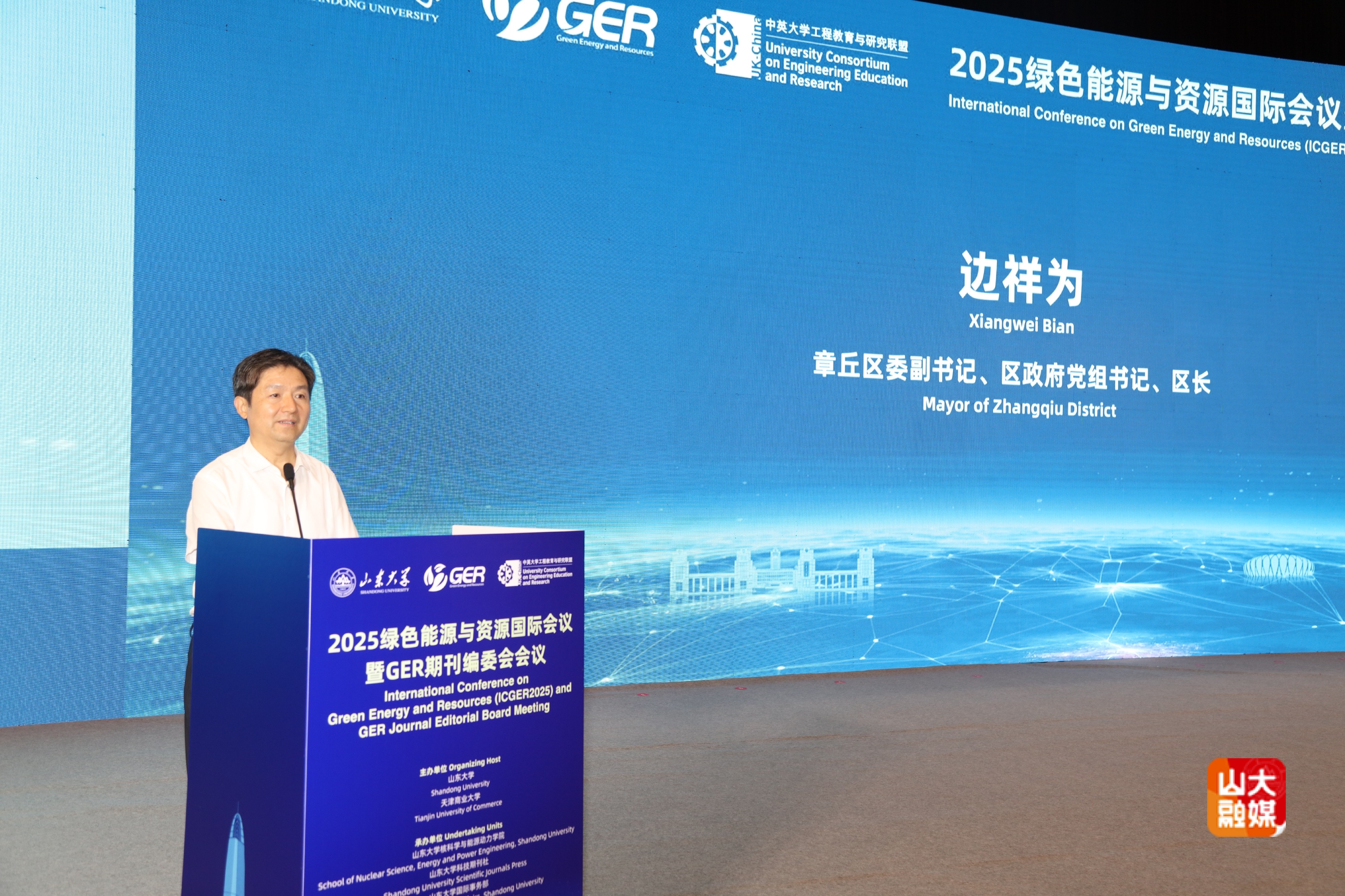 [本站讯]8月1日至3日,2025绿色能源与资源国际会议(ICGER)暨GER期刊编委会会议在济南章丘举办。副校长朱德建,济南市章丘区委副书记、区长边祥为,Elsevier全球期刊副总裁Peter Harrison出席会议并致辞。