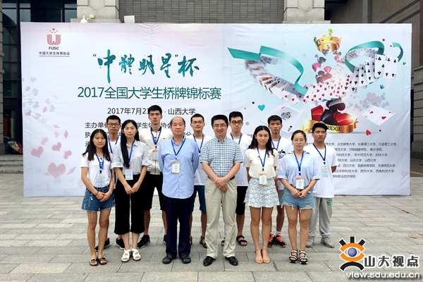 [本站讯]7月23日至26日,由中国大学生体育协会主办,中国大学生体育协会桥牌分会协办的“中体明星杯”2017年全国大学生桥牌锦标赛在山西大学举行。经过激烈角逐,山东大学桥牌队获得女子双人赛第二名、公开双人赛第六名。