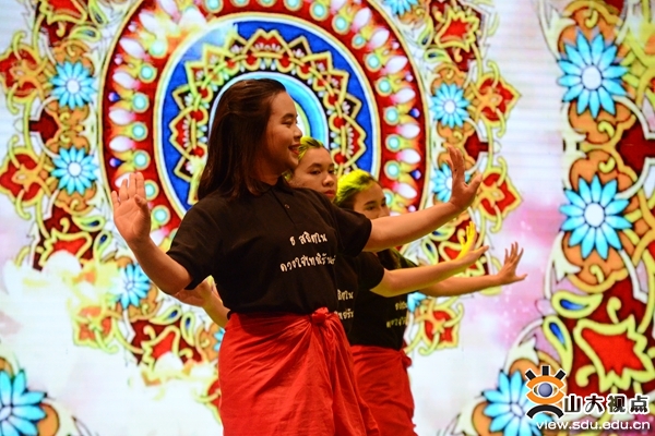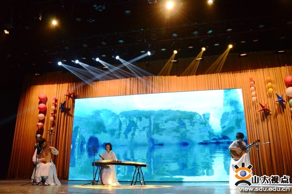 晚会以活力四射的啦啦操开场,来自中国、巴基斯坦、埃及与喀麦隆的主持人分别用四国语言宣布晚会正式开始。随后,来自哈萨克斯坦的玛丽带来了尤克里里弹唱,悠扬的乐声打破了语言的限制,将异域歌声中的深情寄于琴弦,弹唱之间,将动情的演绎慢慢渗进每个人的内心。巴基斯坦留学生将英语表达中的口音差异精心编排成一台欢笑不断的英文小品《Talk Show》,妙语连珠,令人捧腹不止。2014级本科生王晓雨与孙芮联袂山东大学街舞协会在“世界之窗”的舞台上献上了完美的演出,以街舞串烧《四年之约》将场内的气氛推向第一个高潮。尼泊尔留学生沙珂充满异域风情的民族舞蹈吸引了全场的目光;泰国姑娘们以一段《加拉信》展现了独特的暹罗风采;十位中国学生带来一段古典舞,水袖挥洒间,舞起古韵的优雅,恍若杨柳依依重现,与观众一同穿越回春秋的时代,再现《采薇》的风雅。来自五湖四海的中外学生相约在音乐厅的舞台上,汇合八国语言倾情献唱《追光者》,句句打动着观众的心。国际教育学院研究生薛梦晨等人表演的小合唱《我管你》,高亢流丽的嗓音展现了校园十大歌手的水准;古筝伴唱《大鱼》悠远、绵长、动人心弦;校园十大歌手杜中玉携手新晋才艺新星冠军蔡芊芊为大家演唱了一首《身骑白马》。跨越中西的结合,是这个舞台独有的风情。琵琶、古筝与吉他共奏《彝族舞曲》,碰撞起别样的火花。小品《洋媳妇》在中外学生默契的演绎中为大家带来了阵阵欢笑。创意的边界在这个舞台上只会无限延伸,一招一式,中国武术的风采尽在《影舞者》;电光闪动,劲爆的舞步就在一片黑暗中直击灵魂深处。巴基斯坦留学生们还将自己国家的特色融汇在一支支精心准备的民族舞蹈中,变幻的舞姿带来了晚会的又一个高潮。不忘初心,国际教育学院2017级全体研究生献上了同名歌曲,悠远的歌声中饱含着她们对于对外汉语事业的热爱与奉献讲台的决心。挥舞着荧光棒,国际教育学院2017级全体中外本科生在这一刻化身天使,以手语舞结合歌曲《爱》展现出了青春的风采。至此,国际教育学院第三届“世界之窗”中外文化嘉年华闭幕式暨2017迎新晚会落下帷幕。
