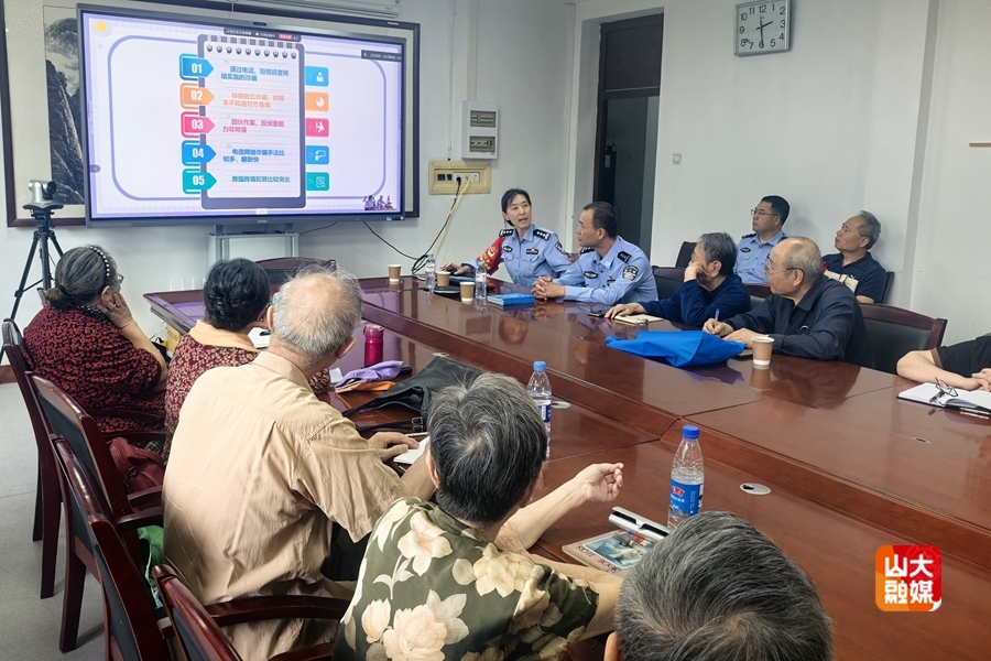 [本站讯]5月15日正值第十六届全国公安机关打击和防范经济犯罪宣传日,济南市公安局历下区分局千佛山派出所副所长程桐携社区民警于志峰、陈绍磊走进山东大学老年大学“弘德课堂”,以“与民同心,为您守护”为主题,为银发学员开展防范经济犯罪专题讲座。活动通过解析新型诈骗模式、创新科技反诈宣传,为老年群体织密财产安全“防护网”。