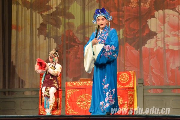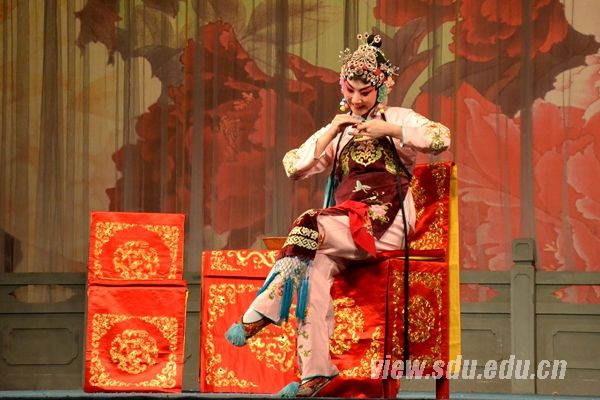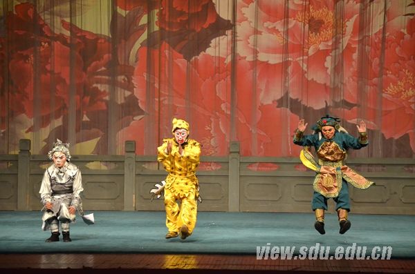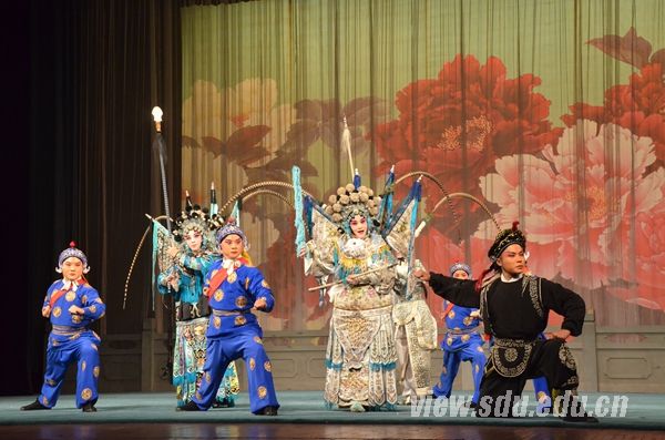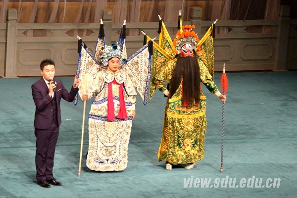 [本站讯]11月29日,山东大学留学生中华传统文化系列体验活动之“带讲解的京剧”在梨园大戏院举办。500多名来自韩国、俄罗斯、美国、英国、德国等90余个国家的留学生上了一堂生动活泼、精彩异常的传统文化体验“课程”。山东省文化厅副厅长张桂林、文化厅艺术处处长张东林,山东大学宣传部部长李平生、国际教育学院党委书记徐关众以及山东省京剧院院长郑少华参加活动。 本次活动由山东大学国际教育学院和山东省京剧院联合举办,一曲京剧音乐《迎春曲》拉开了演出序幕,随后,京剧院的艺术家们又演奏了曲牌《夜深沉》,现场观众听得如痴如醉。山东省京剧院的艺术家们分别演出了《上天台》《贵妃醉酒》《拾玉镯》《杨门女将》《下山》《陆文龙》《三岔口》和《闹龙宫》等经典剧目,台下留学生们不时报以热烈的掌声和喝彩声。本次专场演出旨在提高外国留学生对中国传统文化特别是戏曲文化的认知,传播国粹,同时作为京剧艺术进校园专题活动,为提高趣味性和知识性,山东省京剧院安排了主持人,用通俗易懂的语言为大家讲解每个片段,为留学生普及了京剧基础知识——京剧的人物、音乐,演员的角色分配、腔调、语言、动作等。主持人的讲解和艺术家们的表演相得益彰,使大家在欣赏节目的同时,学到了更多京剧知识,以及如何欣赏京剧。活动结束后,留学生们意犹未尽,兴致勃勃地上台与演员们合影留念。 山东大学国际教育学院一向重视对留学生的文化教学及体验活动。结合中华传统文化研究与体验基地的建设,学院每年为留学生举办茶文化、书法、武术等体验活动与课程,打造了一系列品牌文化活动,如中外文化嘉年华系列活动、汉语大舞台、趣味汉语比赛等,深受留学生欢迎。学院将进一步整合各种资源,打造精品项目,活跃中外学生生活,为国际化校园建设增光添彩。 山东省京剧院作为山东大学中华传统文化研究与体验基地的校外基地,一直致力于中华传统艺术的对外传播,曾在山东大学海外孔子学院巡回演出中取得了宝贵经验,并多次与山东大学合作,将这种带讲解的京剧形式进行推广,成为介绍、传播中国传统艺术文化的重要媒介,使更多外国朋友了解京剧这一国粹,架起文化交流的桥梁。