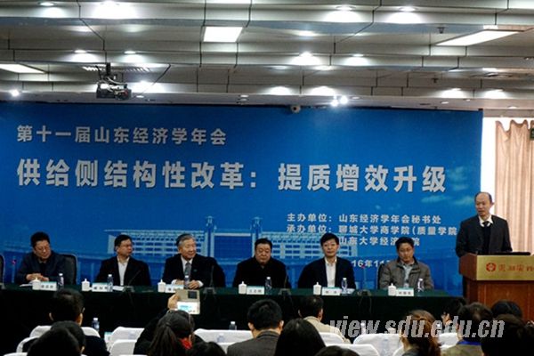 [本站讯]近期,第十一届山东经济学年会在聊城大学商学院召开,本次年会主题为“供给侧结构性改革:体制增效升级”,大会由山东经济学年会秘书处主办,山东大学经济学院与聊城大学商学院联合承办,来自省内外100多名经济管理类的入选论文作者和专家学者出席会议。