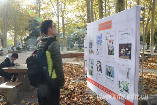 [本站讯]11月11日,由人民日报、山东大学联合举办的《图说我们的价值观》图片展在山东大学中心校区展出。
