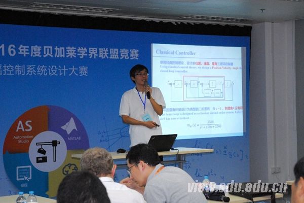 比赛中,山东大学代表队学以致用,采用时间最优控制、模糊PID控制等算法,提出了最优控制约束条件及其求解方法,设计了最优防摇控制系统,以优秀的现场调试结果和精彩的现场答辩博得了包括贝加莱奥地利总部自动化学院院长Franz Enhuber等在内的中外评委的高度评价。最终,由李帆、刘藏藏、孙传金组成的“小菜鸟”队获一等奖,将赴奥地利贝加莱公司总部参观学习;由康永哲、邱涵、巩嗣钊组成的“启航”队获得二等奖,由魏兴国、王海洋、李刚组成的“卫星一号”队和国玉刚、孔卓、杨亚宁组成的“小轩窗”队获得三等奖。比赛期间,山东大学参赛师生还与企业代表进行了深入交流和研讨,并作了“Digital transformation fundamental changes in education”、“迈向智慧工厂的第一步:开放性的APROL平台实现透明车间”等多个工业自动化领域的前沿报告,受到广泛好评。