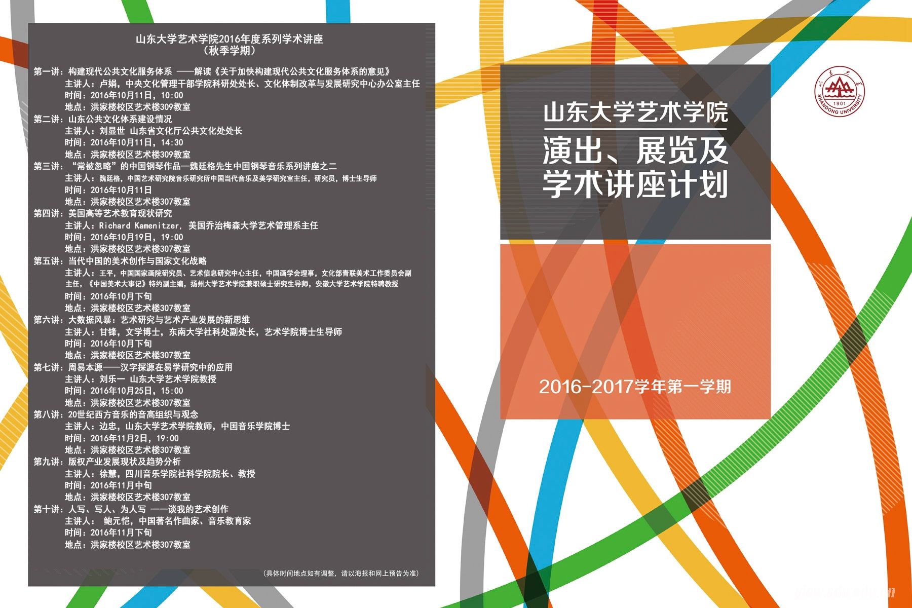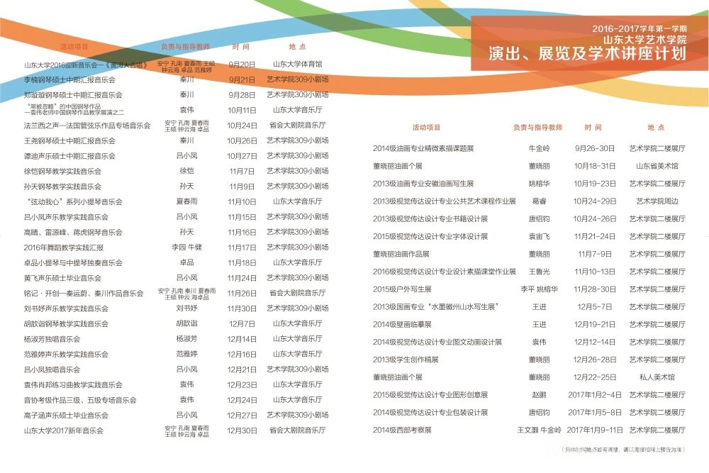 [本站讯]近日,艺术学院2016-2017学年第一学期音乐演出、美术展览以及学术讲座计划确定,正式公布。