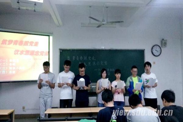 坚定理想信念,展示青春风采。各学院的主题团日形式多样,以缤纷多彩的活动彰显青年魅力。管理学院2013级会计一班团支部举办“一颗红心照党情”书画大赛,既为青年学生提供了展示风采的平台,又向建党九十五周年献上了属于青年的礼物。儒学高等研究院2014级团支部开展了“爱党爱国正青春”诗歌朗诵会,古典与现代兼备,同学们铿锵有力的礼赞感染了到场师生。电气工程学院2014级3班团支部以趣味团课的形式,让同学们走出宿舍、走出教室,寓教于乐,在游戏和比拼中掌握党史知识。