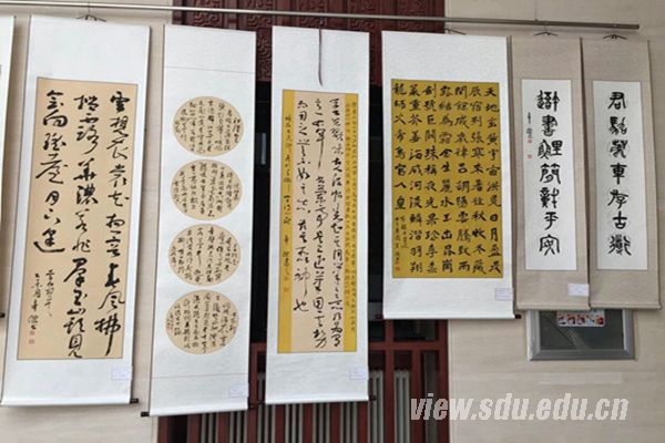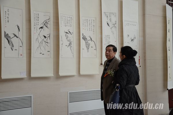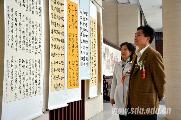 [本站讯]3月19日,于长山、辛杰书画篆刻展暨艺术研讨会在中心校区举行。展览日期为3月19日至4月18日。 本次展览共有98幅书画、篆刻作品,以多样的风格和多元的话语,诠释了于长山、辛杰对书法艺术和对生活的热爱,或正草隶篆、笔力非凡,或置阵布势、临见妙哉,作品传承创新、相得益彰,笔随时代、墨见精神,充分表达了山东大学书画院对工作和生活的美好祝愿,展现了山东大学教师丰富多彩的精神文化生活和积极向上的精神风貌。不要人夸好颜色,只留清气满乾坤。其作品既承继传统又别开生面。二人书风迥异但自有风规。曾在全国各项书画大赛中获奖。 于长山,字白云,现任山东大学书画研究院副院长,山东省书法家协会会员,研习书法、国画、篆刻近四十年。山水竹石取法宋元文人画而自有新意,书学二王、初唐及北宋诸家。作品多次参加省市及国展,并于1999年篆刻作品获《中国书画大奖赛》一等奖,1999年书法作品获“天鹅杯”书画大奖赛特等奖。 辛杰,山东大学管理学院教师。现为中国高校书法协会理事,研习二王、王铎数年,对圣教序用功最深。曾在“第六届全国高校师生书画艺术大展赛”获一等奖,“和平杯全国书法大赛”中获金奖,“首届中国书法篆刻大奖赛”中获银奖,作品入选中国书协及省书协举报的书展数次。