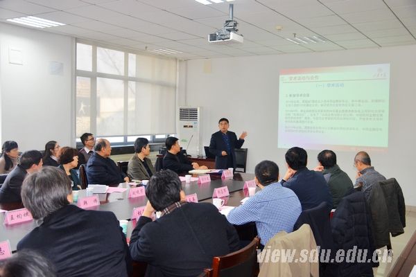 胡金焱教授就两大项目的研究进展情况作了专题报告。课题组成员就近期主要研究成果进行了介绍,报告了部分论文成果,通报了开展国际合作的具体情况以及2016年的国际合作研究计划。中国小额贷款公司协会信息与研究处主任黄泽锋、山东省金融工作办公室副主任韩炜、山东省银监局副局长刘悦芹、中国人民银行济南分行副行长王均坦、山东省小额贷款企业协会秘书长姜明文、齐鲁工业大学金融学院院长徐如志、山东舜德数据工程有限公司董事长田茂圣、山东省宏观金融研究院秘书长刘保麟等金融界领导和专家应邀出席会议。山东大学科学技术研究院院长张建教授、人文社科研究院院长邢占军教授、经济学院院长李长英教授以及课题组专家参加了报告会。报告会由课题组成员、经济学院金融系主任徐涛教授主持。