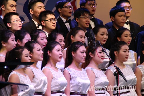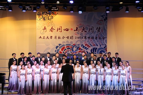[本站讯]12月27日晚,山东大学舜歌合唱团2016年“青春同心 山大同梦”专场音乐会在中心校区圣昆仑音乐厅举行。山东大学党委副书记仝兴华、陈向阳出席并观看了演出。