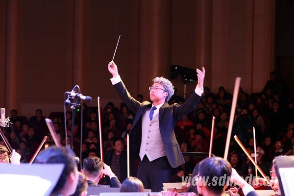 音乐会由山东大学(威海)青年交响乐团倾情演出。音乐会在一曲热烈欢腾的《春节序曲》中正式拉开帷幕,欢乐的旋律、明快的节奏瞬间营造出浓浓的新年氛围。旋律雄浑激昂的《红旗颂》表现了中国人民在红旗的指引下奋发向上的气概,讴歌了伟大祖国蒸蒸日上的繁荣景象。《安娜波尔卡》节奏动感、充满活力,使人仿佛看到一位如花少女轻妙灵动的舞姿。伴随着《蓝色多瑙河》明快的节奏,一群优雅的舞者从各个方向进入演出现场,在悠扬的乐曲中围绕观众翩翩起舞,新颖的表演方式引起现场热烈的掌声。电影《碟中谍》主题曲《Mission:Impossile》采用了disco式风格,伴随着熟悉动感的旋律,一场精心编排的现场《碟中谍》默剧诙谐幽默地呈现给观众,现场不时爆发出阵阵笑声。《红色娘子军》经典的旋律引起了现场观众的共鸣,《无穷动波尔卡》循环往复的乐曲形式中穿插了演奏者偶尔俏皮的表演,引起现场观众的会心一笑。