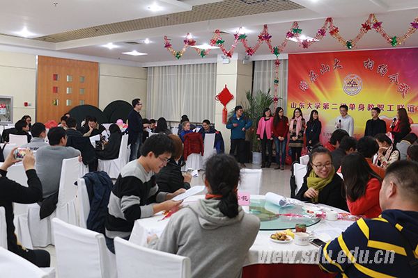 [本站讯]11月6日晚,由山东大学工会、妇委会主办,后勤保障部工会承办的“缘在山大,相约今秋”——山东大学第二届单身教职工联谊会在中心校区举行。校工会主席曲波致辞,校妇委会主任兼工会副主席朱桂英主持会议。