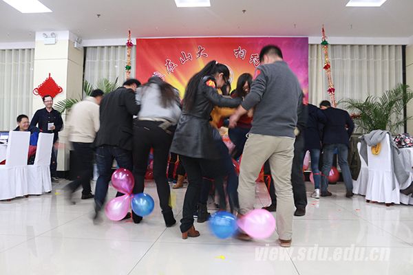 本次联谊活动设有自我介绍、游戏互动和精彩舞会环节等三部分。自我介绍环节,每位嘉宾分组登台亮相,介绍了自己的姓名、年龄、单位、职业等情况。台上嘉宾介绍得认真、幽默,时时博得台下观众的掌声和欢笑。游戏互动分为“护花使者”、“龙凤戏珠”和“心有灵犀”等。几个游戏下来,男女嘉宾从起初的约束、拘谨和放不开渐渐变得热情、大方、亲密了许多,最后变得配合默契。特别是“心有灵犀”部分,各种千奇百怪、张牙舞爪的动作引得现场观众不时爆发出阵阵笑声。联谊活动主持人韩笑晨、杜亮相当给力,逗得嘉宾时而眉开眼笑,时而捧腹大笑。整个联谊活动不仅内容丰富,节目新颖,气氛热烈,还给老师们提供了水果、点心和热饮,老师们倍感亲切、温馨、浪漫、朴素、高雅。活动体现了学校党委关心教职工生活、全心全意为群众服务的宗旨,激发了教职工干事创业的热情和激情。