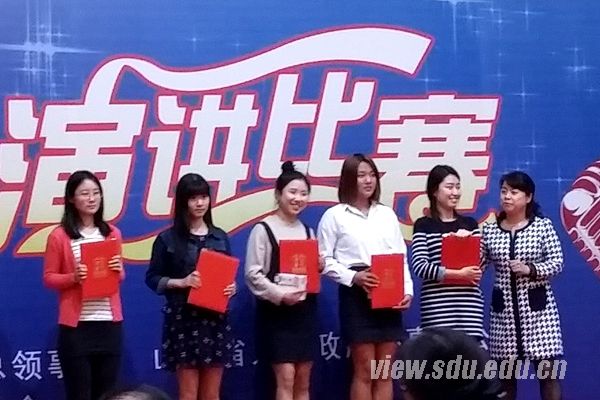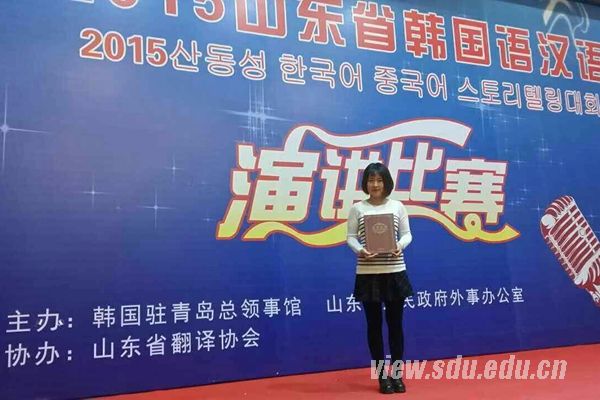 本次比赛由山东省人民政府外事办公室及韩国驻青岛总领馆联合主办,山东省人民政府外事办公室副主任李永森及韩国驻青岛总领馆馆长李寿尊先生出席比赛。该比赛每年一次,大赛为选手设立冠亚季军的同时,还根据各高校参赛选手的总成绩排名,经过激烈角逐,山东大学以总成绩第1名获得本次比赛的优秀组织奖,指导老师高红姬获优秀指导奖。李永森、韩国驻青岛领事馆领事金荣世先生分别为获奖选手及学校颁奖。