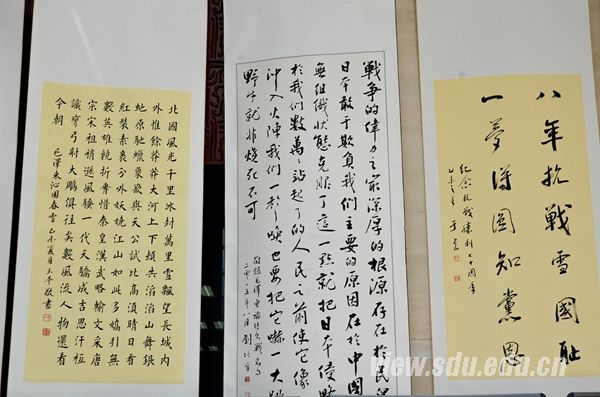 本次展览充分展现了山东大学教职工的书画艺术水平和高度的爱国情怀,反映出山东大学全体师生对庆祝抗战胜利70周年的由衷喜悦。