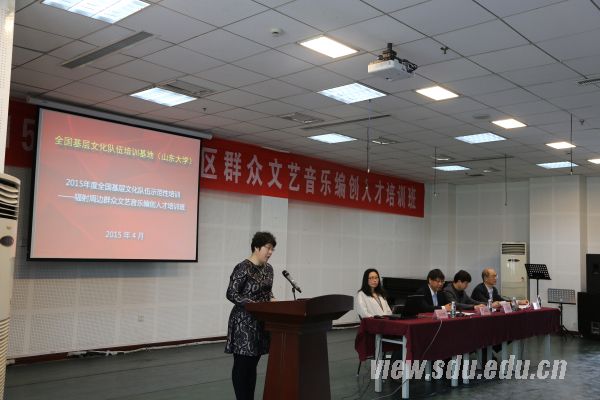 [本站讯]4月20日,由全国基层文化队伍培训基地(山东大学)承办的“2015年度辐射周边群众文艺音乐编创人才培训班”开班。开班仪式由艺术学院党委书记史永志主持。