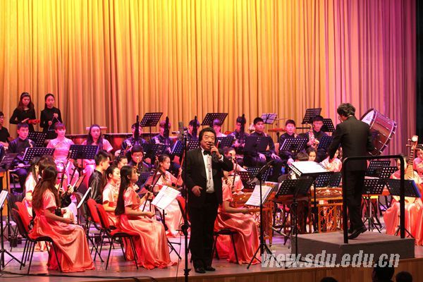 音乐会由山东大学(威海)艺术学院民乐团倾情演出,国家一级作曲家、指挥家,中国民族管弦乐学会常务理事,指挥家学会副秘书长景建树担任乐团指挥。音乐会在《春节序曲》中拉开帷幕,欢腾的曲调营造出浓浓的节庆氛围。《江南美》描绘了一幅烟雨迷蒙的江南风景画,讲述了少女出嫁的婉约心事;陕北乐曲《闹红灯》地方色彩浓郁,嘹亮的唢呐再现了节庆日的热闹场面;由吴静寅教授演唱的新疆民歌《我的花儿》歌声悠扬,传达出歌曲主人公对心爱姑娘的浓浓爱意;山东民歌《包楞调》以独特的花腔女高音将春夏秋冬、山水花草、日月星辰等丰富的意象一一唱来;取材于新疆塔吉克民乐的《阳光照耀着塔什库尔干》,展现了辽阔美丽的草原风光和牧民们马上高歌的民族风情;乐曲《月牙泉的故事》婉转缠绵,如涓涓泉水流入观众的心田;《丝绸之路》以多变的调式风格再现了丝绸之路的风云过往。整场音乐会气氛热烈、表现力强,演绎了多首具有不同民族、地域风情的乐曲,给观众带来一场视听盛宴。