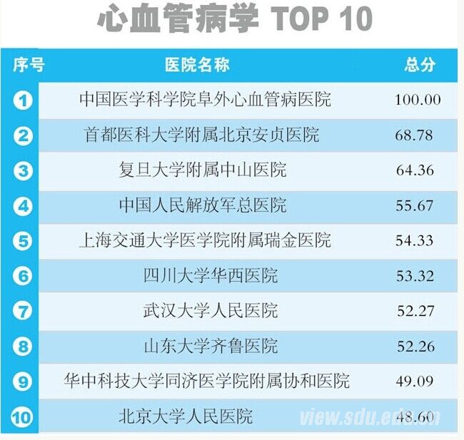 [本站讯]2014年12月30日,2014年度中国医院科技影响力排行榜发布,山东大学齐鲁医院位列排行榜综合类第18位,是省内唯一进入综合排行榜的医疗机构,此外医院心血管病学位列专科排行榜第8位。