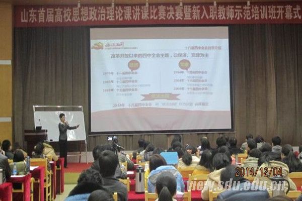 山东首届高校思想政治理论课教学比赛由中共山东省委高校工委于2014年10至12月举办,旨在贯彻落实《中宣部、教育部关于进一步加强高等学校思想政治理论课教师队伍建设的意见》和《中共山东省委宣传部、中共山东省委高校工委、山东省教育厅关于深入推进全省高校思想政治理论课建设的若干意见》精神,进一步提高全省高校思想政治理论课教师的教学能力,提升思想政治理论课教育教学质量。