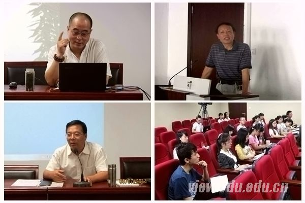 杨加深教授以“加深印象——中国书法审美”为主题,诙谐幽默地描绘了传统书法的发展脉络,将“晋人尚韵”、“唐人尚法”、“宋人尚逸”的书法风格进行了全面阐述,并从多个方面分析了书法演变的过程及原因。张熙惟教授以地域文化为切入点,介绍了“务实尚变、与时俱进,崇德尚礼,诚信和谐”的齐鲁文化,并以丰富的史料阐释了齐鲁名人的学术发展历程,指出“山东学术不仅在秦汉时期为主流文化,更在秦汉以后主导中华学术的走向,为中华学术文化的发展做出了杰出贡献”。刘玉平教授讲授了《周易》中所体现的传统文化和人生智慧,鼓励大学生要肩负起传承、创新传统文化的使命,逐步形成广泛而扎实的学识,培养理性而灵动的思维方式,并积极而卓有成效地投身于社会实践,脚踏实地将传统文化发扬光大。