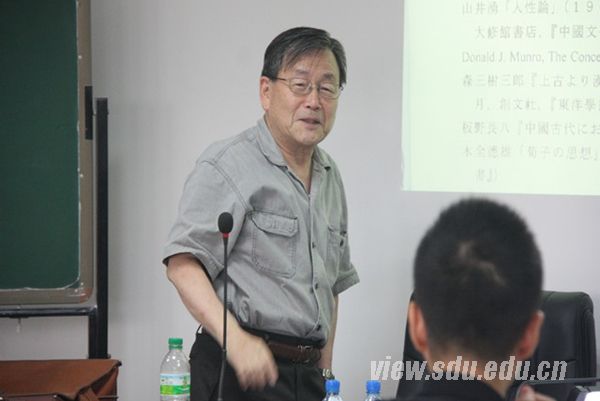 报告中,池田知久教授首先介绍了人性思想的产生。他逐一论述了孔子之性、孟子“性善论”、《礼记》诸篇之“性”、道家之“性”、荀子“性恶说”等各家各派对于“性”的解读,为“性三品”的展开奠定了牢固的基础,也使在座学生对人性思想的产生有了更为系统地了解。随后,池田知久教授通过研究“战国晚期至西汉初期‘人性说’折衷”这一现象,探讨了变革时期新的人性思想,并认为“人性平等观”开始逐渐显露。他进而从学习、修养之体的变化,上、中、下“三品人性”的差异,“人性三品说”的经典根据与经学,“人性三品说”的宿命论化等方面论述了“人性三品说”的成立与展开。同时,他列举了《淮南子》、《春秋繁露》等文本中的相关文献资料加以佐证与对比。最后,池田知久教授认为“人性三品说”的最终完成体现在韩愈的《原性》,而它的崩溃则归结于佛教的传入与兴盛。池田知久教授整场报告以中文完成,不仅充分展示了“人性说”所反映的人性的平等与不平等,更让同学们感受到了学者严谨的治学风范。