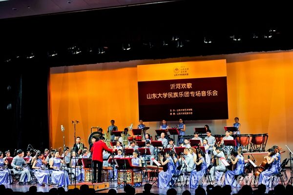[本站讯]11月11日,“沂河欢歌”山东大学民族乐团专场音乐会在山东大学圣昆仑音乐厅(科学会堂)举行。音乐会由乐团艺术总监、著名指挥家、作曲家、笛子演奏家山东大学曲祥教授担任指挥。音乐会以乐团演奏中国民族音乐为主,穿插了艺术学院优秀师生的独奏、独唱曲目,让大家充分感受到中国传统音乐之美。副校长娄红祥,前来山大参加中美高等教育研讨会的美国大学理事会、美国有关高校、中国国家汉办的相关负责人,中国文联相关负责人,省内兄弟院校的业内专家观看了演出。 音乐会在民族管弦乐合奏《喜讯》中拉开序幕。曲祥教授创作的笛子独奏曲《沂河欢歌》曲调亲切、音韵优美,演奏者刘钰聪用悠扬的笛声把观众带到了风景秀丽的沂蒙山区。艺术学院青年教师王硕和研究生邵雅楠演奏的二胡大提琴与乐队《菊花台》婉转动人,含蓄哀伤,带给大家别样与电影般的全新感受。管弦乐曲《大宅门》京韵十足、特色鲜明,熟悉的旋律让电视剧《大宅门》情境在音乐厅里得到了生动的呈现。张天尧表演的琵琶独奏《龙船》将江南水乡人民端午节举行龙舟竞渡时热烈欢腾的景象和人们欢度佳节时的喜悦心情展现给了现场观众。李晓琛表演的古筝独奏《春涧流水》音色玲珑清澈,生动地诠释了青山绿水的绝佳意境,给人带来身临其境、如闻其声的真切感受。艺术学院青年教师梅靖表演的扬琴独奏《海燕》生动表现了海燕怡然翱翔的生动情景。艺术学院青年教师刘迎新表演的笙独奏《挂红灯》将人们欢度春节的热烈场景展现给在场观众。赵品演唱的《谁不说俺家乡好》旋律优美、脍炙人口,充满了浓郁的沂蒙山区地方风味。马云腾演唱的《儿行千里》,渗透了浓厚的母子母女之情、以深挚感人的细节描写来塑造了伟大的母爱形象。音乐会在王洪震表演的唢呐独奏《打枣》中达到高潮,高亢明亮的唢呐,低而带有鼻音的咔戏,高而清脆的口弦声相互对应、生动活泼、对比鲜明,生动再现了男女老少的逗趣对唱的欢乐情景。音乐会在喜庆洋溢、欢快热烈的《花好月圆》中结束。 演出结束后,许多观众表示,圣昆仑音乐厅落成不到一个月,却已经给全校师生带来了四场高规格、高品质的音乐会。音乐会涵盖西方古典音乐、中国传统音乐、中外名曲、近现代新创作作品等。多样的音乐不仅让师生们一饱耳福,更让大家更全面更深切感受到高雅音乐之美。 山东大学民族乐团由山东大学艺术学院优秀师生组成,乐团致力于对中国民族音乐文化的传承与传播,多次应邀赴香港、台湾、日本、韩国、俄罗斯等地外参加重大国际艺术交流活动。