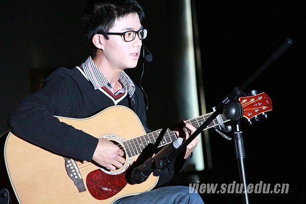 在青春歌会上既有莘莘学子青春活泼、热烈动感的校园流行歌曲,也有学校老师和特邀的省音协的歌唱家们大气磅礴、深情真挚的民族美声歌曲,雷鸣般的掌声和欢呼声掀起了歌会的一波又一波高潮。一曲火爆的《We are never ever getting back together》青春洋溢,瞬间引燃现场气氛,接下来的歌曲更让大家眼前一亮,清新的弹唱风格,富有质感的嗓音,如同安和桥下的汩汩流水,清澈而干净。随后,四个青春可爱的女生用传统曲艺“三句半”的形式演绎了多姿多彩的数院生活,既有诙谐幽默的调侃,又有真实生动的感叹,展现了数院学子严谨求学又不失青春活力的良好风貌,引起了台下同学们的强烈共鸣。笑声渐落,幽蓝的灯光亮起,笛声悠扬,古筝清泠,与电子琴、小提琴和架子鼓完美地结合,一曲古色古香的《青花瓷》让大家从欢乐跳脱的校园生活中走入烟雨迷蒙的江南古镇。之后的歌曲串烧或甜蜜深情,或缥缈轻柔,或低沉婉转,风格各异的歌曲在同一个舞台上演绎出不同精彩。一曲曲劲歌热舞让现场持续升温,接连不断、异彩纷呈的演出带给大家视听的双重享受。