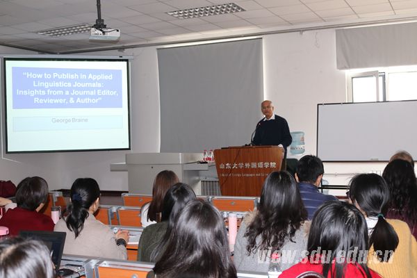 [本站讯]3月20日,香港中文大学George Braine教授做客外国语学院,作了题为“How to Publish in Applied Linguistics Journals: Insights from a Journal Editor,Reviewer, Author”的讲座。外国语学院院长王俊菊教授主持此次讲座。