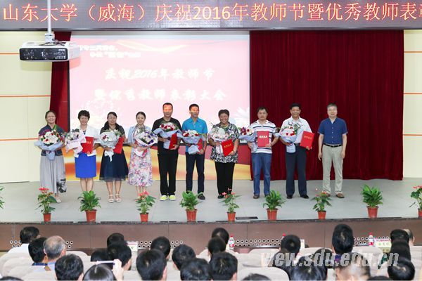 会议由山东大学(威海)副校长陈冠军主持。表彰大会上,山东大学(威海)副校长刘海宣读了《关于授予王瑞君等15位同志2016年“山东大学(威海)优秀教师”和“山东大学(威海)先进教育工作者”荣誉称号的决定》、《关于表彰2015-2016学年优秀本科生导师的决定》和山东大学(威海)第七届“我最喜爱的导师”评选活动获奖者名单。与会领导分别为受表彰教师代表颁发获奖证书。