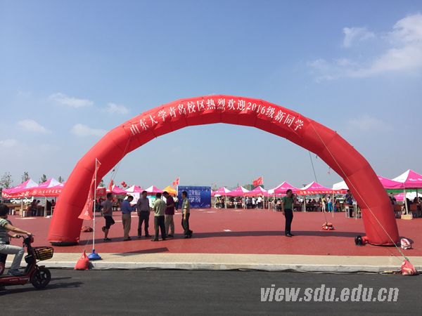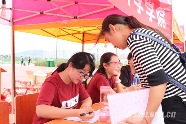 由校团委组织的身着“山大红”文化衫的志愿者们,为青岛校区迎新增添了一道独特的风景线,190名来自济南的志愿者们分配至综合协调组、注册报到组、接站服务组、安全保障组和应急服务组,他们放弃中秋假期,全力服务于青岛校区迎新工作。