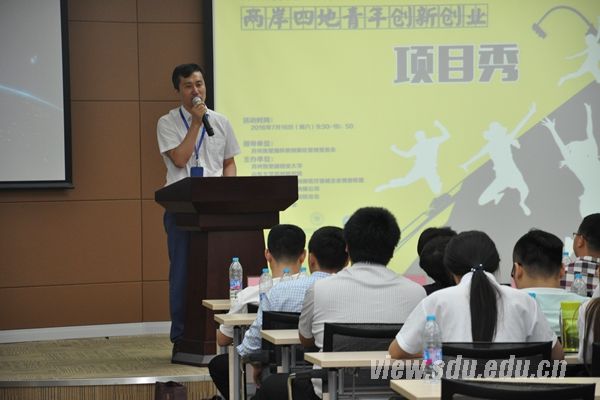 [本站讯]7月16日,由苏州独墅湖科教创新区管委会指导,独墅湖创业大学、山东大学苏州研究院以及苏州工业园区自主创新医疗器械企业独墅联盟联合主办的“两岸四地青年创新创业项目秀”活动在苏州独墅联盟举行。苏州独墅湖科教创新区管委会副主任沈丽娟、山东大学苏州研究院常务副院长吕明新出席活动。