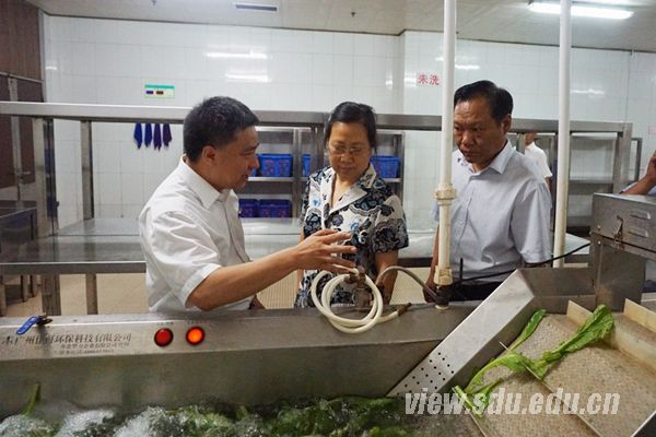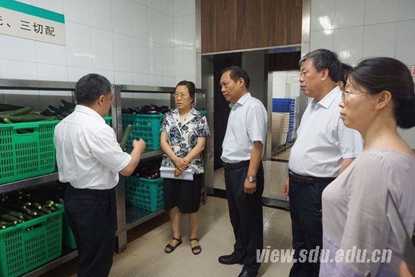 在中心校区食堂,巩宪群一行现场查看了物资储存、原材料加工、餐具洗消、主副食产品加工等工作流程,对食堂食品安全管理规范、要求、重点环节以及监管机制进行了详细询问和了解。她对山东大学保障学生餐饮安全方面的工作给予了高度评价,表示学校领导高度重视学生食堂工作,食堂认真贯彻落实新《食品安全法》,严格规范食品安全管理,山大食堂科学、规范的食品安全保障运作机制已经成为全市餐饮行业食品安全管理的一面旗帜,值得在全市乃至全国推广。济南市药监局有关负责人、山东大学相关部门负责人参加活动。