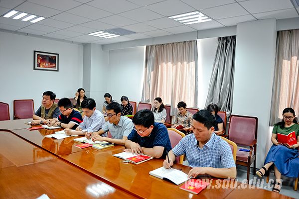 [本站讯]5月30日下午,党委宣传部党支部组织召开“两学一做”学习教育专题学习会。宣传部部长、党支部书记李平生为支部全体党员上党课,就《中国共产党章程》进行了详细解读。副部长张青、鞠晗,新闻中心副主任孙宜山等参加会议。