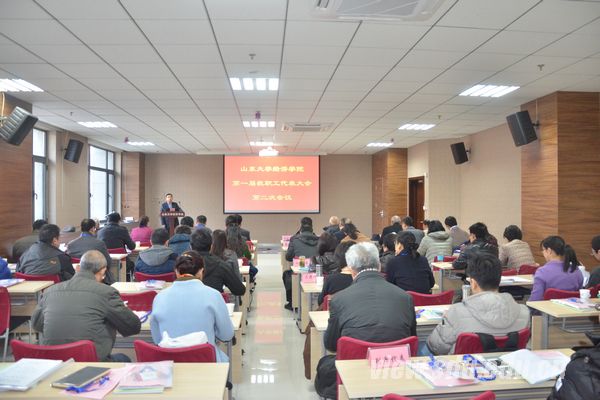 [本站讯]1月8日,经济学院第一届教职工代表大会第二次会议在知新楼举行,学院36名教代会代表、5名特邀代表、5名列席代表齐聚一堂,共商学院大事。副校长胡金焱代表学校讲话。校工会主席曲波致辞。经济学院院长李长英作学院工作报告,党委书记王秀丽主持会议,党委副书记李维林作学院财务工作报告,副院长陈新岗作教代会提案征集工作报告。