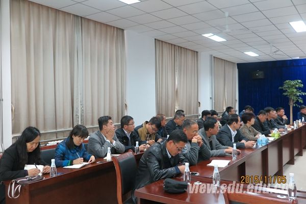 青岛校区党工委书记孔令栋主持会议,他高度评价了各部门的工作成果和经验,并对工程进度、工程投入和工程质量进行了分析。青岛校区建设指挥部副总指挥李振奎从工程造价、建设工期、建设主体方面介绍了如何控制好工程建设质量。