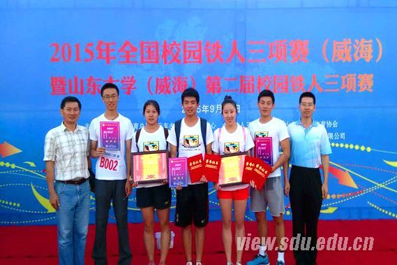 [本站讯]9月20日,全国校园铁人三项赛威海站的比赛在山大(威海)举行。山东大学代表队获得本次比赛团体第一名。复旦大学、山大(威海)分列第二、三名。体育学院副院长徐剑波、王飞担任山东大学领队。