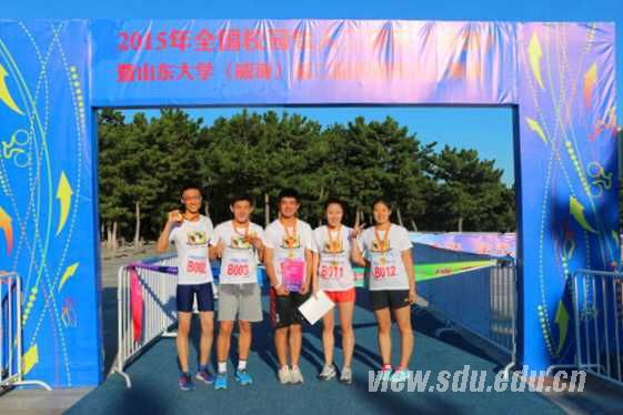 比赛伊始,男子组的郑茂周、陈智彬、弥霄汉率先出发,随后女子组的翟英婕占领领先位置并首先起水,刘怡欣随后。翟英婕、刘怡欣在四公里小轮车前半程一路领先,但在后半程上坡路段被山大(威海)的参赛选手反超。男子组,郑茂周虽起水较晚,但在四公里小轮车赛段一直保持稳定的节奏,反超多名参赛选手。在一千五百米赛跑中,由于在游泳以及小轮车项目上耗费了大量体力,弥霄汉速度开始下降,但在郑茂周的鼓励下,他调整呼吸与步伐坚持完成了整段比赛。最终,翟英婕、刘怡欣分别获得女子组第三、四名,陈智彬、郑茂周、弥霄汉分别获得男子组第二、四、五名,男女团队综合成绩第一名。