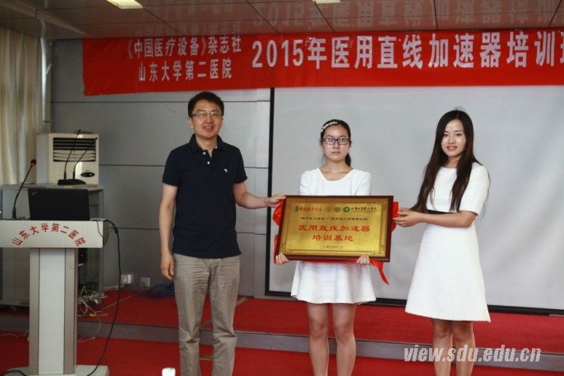 [本站讯]6月26日,由《中国医疗设备》杂志社与第二医院合作筹建的国内首家“医用直线加速器培训基地”在第二医院举行挂牌仪式,同时举行“2015医用直线加速器(济南)培训班”开班仪式。第二医院党委副书记兼副院长赵小刚,杂志社行业发展部主任尹晴,中国粒子加速器学会应用委员会副主任委员、科技部专家李秀清教授等参加了挂牌及开班仪式。