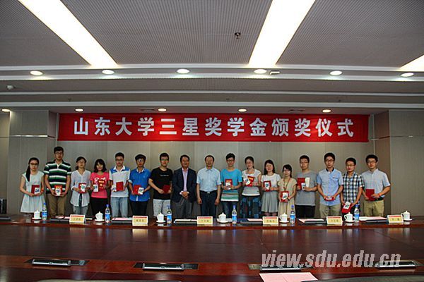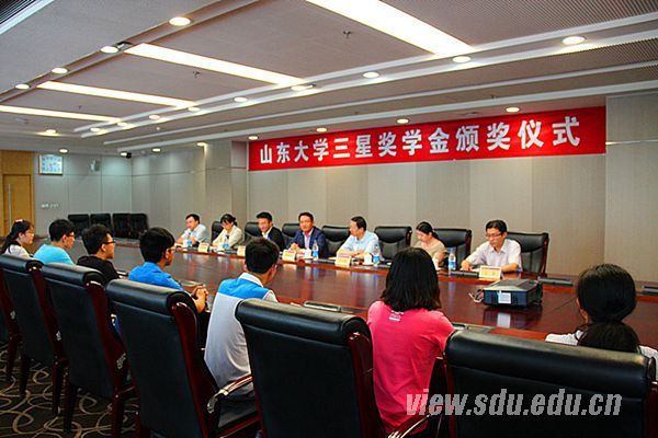 仪式由山东大学学工部部长王浩主持。仪式上,研工部部长王君松宣读了《山东大学关于表彰2014年度三星奖学金获得者的决定》,信息学院2012级本科生刘吉松代表获奖同学发言。中国三星集团和山东大学相关部门负责人参加了活动。