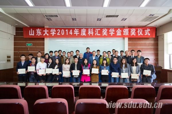 [本站讯]4月15日,山东大学2014年度研究生科汇奖学金颁奖仪式在山东大学千佛山校区举行,共有29名研究生获得2014年度研究生科汇奖学金。校领导方宏建出席仪式并致辞。