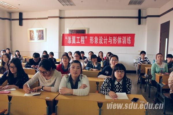 [本站讯]3月29日,山东大学2015年春季学期“添翼工程”系列培训开课,大学生礼仪规范培训、形象设计与形体训练课程在洪家楼校区开展。课程由山大艺术学院党委副书记姜楠主讲。