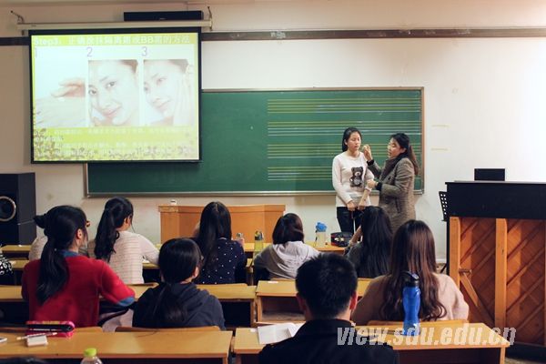 在大学生礼仪规范培训的课堂上,姜楠介绍并演示了礼仪之概念、常用中华礼仪用语等知识以及站姿、坐姿等仪态的要领,优雅又不失幽默的上课方式充分调动了同学们的兴趣与积极性。形象设计与形体训练的课程包括面部化妆、打领带、系丝巾、形体训练多个部分,课程由艺术学院教师及四位助教共同讲授,艺术学院的研究生主要就面部化妆部分进行讲解与演示。此次形象设计与形体训练课让学员们对化妆有了较充分的了解并掌握了一部分简单的化妆技巧。化妆不仅是对自己的修饰更是对社交对象的尊重,掌握这门技巧将会对学员们的日常社交生活大有帮助。来自不同校区的三十多位同学及“添翼工程”学生运营团队的四位相关负责人共同参加了此次课程。
