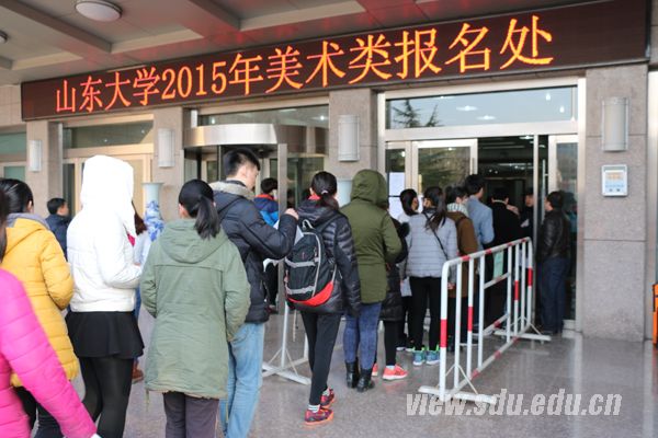 2015年艺术类招生考试工作顺利结束。音乐类初试报名1824人,361人通过初试并参加了复试;美术类在济南、太原、长沙、杭州设置考点,共计报名4701人。考试期间,山东大学副校长陈炎到济南考点检查相关工作。