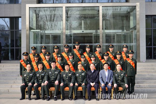 会上,山东省军区政治部副主任吴巨峰大校对“学习践行强军目标,做新一代革命军人”主题教育活动进行了部署;驻山东大学、烟台大学选培办主任王强上校宣读了济南军区政治部干部部《表彰2014年度军区优秀国防生》的通报。与会领导为19名优秀国防生颁发证书证章,并为国防生赠送图书。会议由山东大学党委学生工作部部长王浩主持。