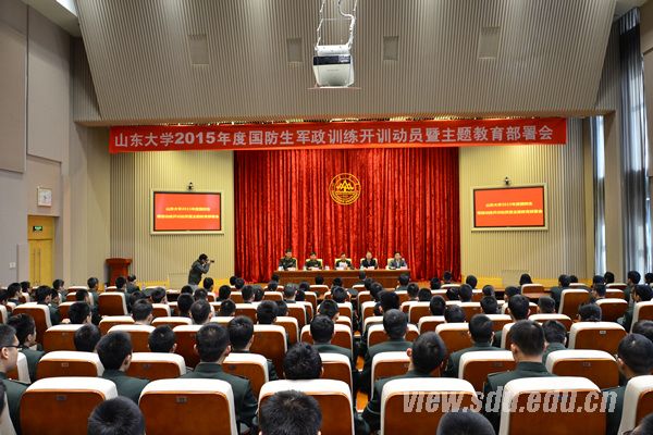 [本站讯]3月22日,山东大学2015年度国防生军政训练开训动员暨“学习践行强军目标,做新一代革命军人”主题教育部署会在中心校区举行。山东省军区副政委孙显宁少将、山东大学副校长张永兵出席会议并讲话。
