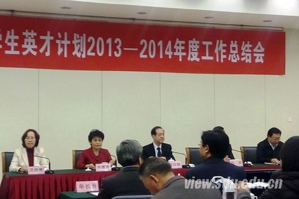 [本站讯]12月11日,“中学生科技创新后备人才培养计划(简称“中学生英才计划”)2013-2014年度工作总结会”在北京中国科技会堂召开。全国政协副主席、中国科协主席韩启德,中国科协书记尚勇,教育部部长助理林蕙青出席会议并讲话。会上为山东大学等20所计划参与高校颁发了“中学生科技创新后备人才培养基地”牌匾。山东大学本科生院副院长、泰山学堂副院长张树永出席会议。